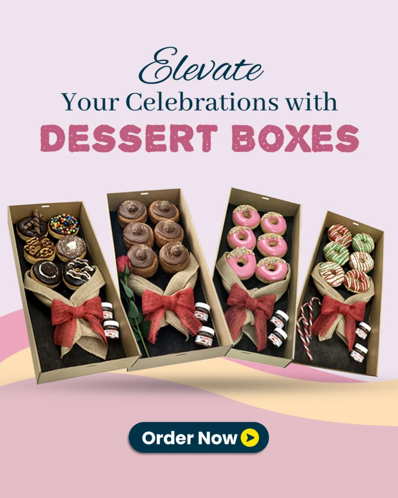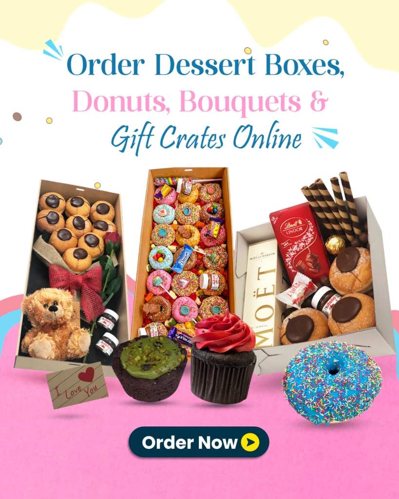 Select from our extensive range of desser boxes, donut bouquets, and gift hampers.